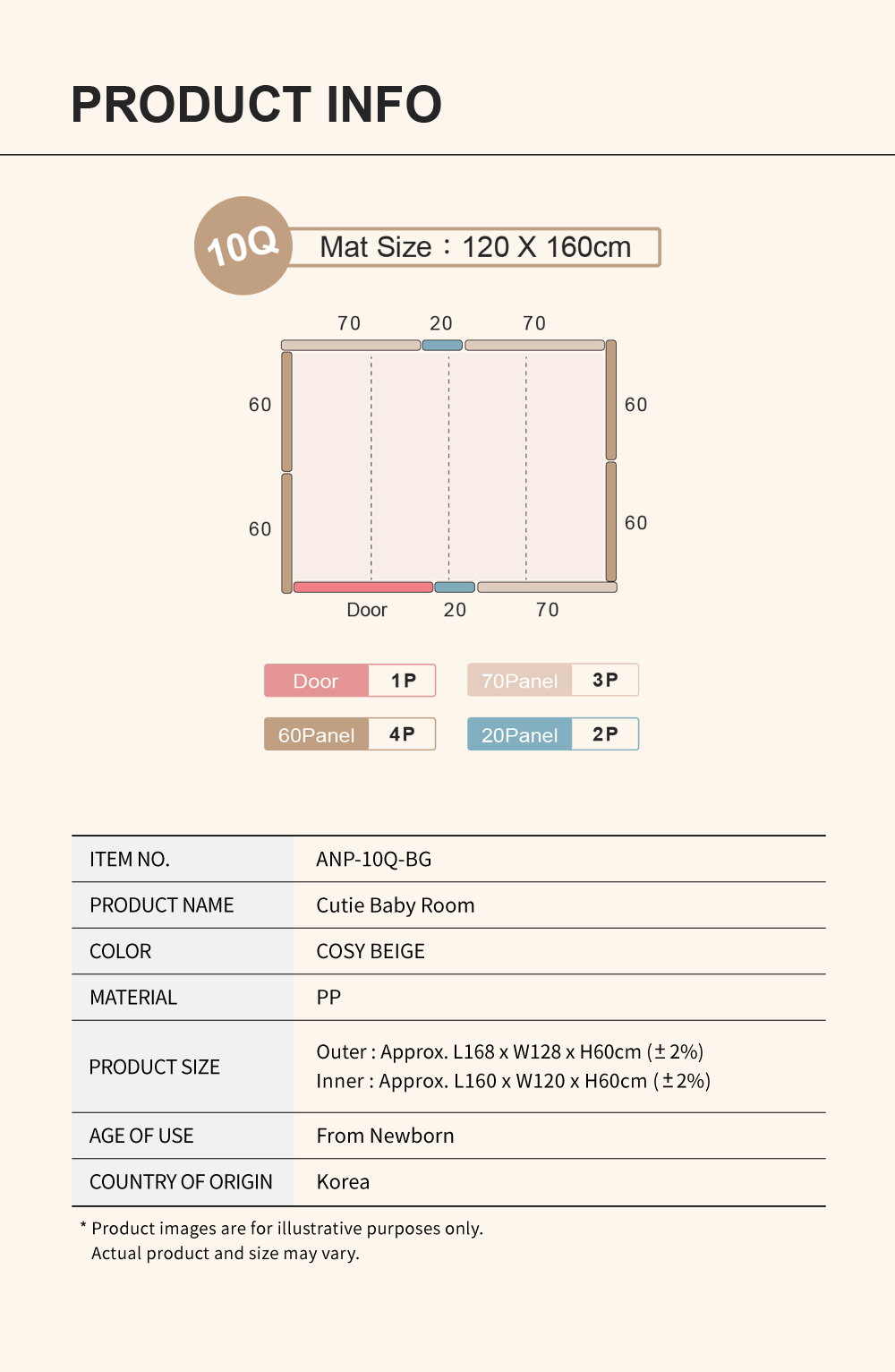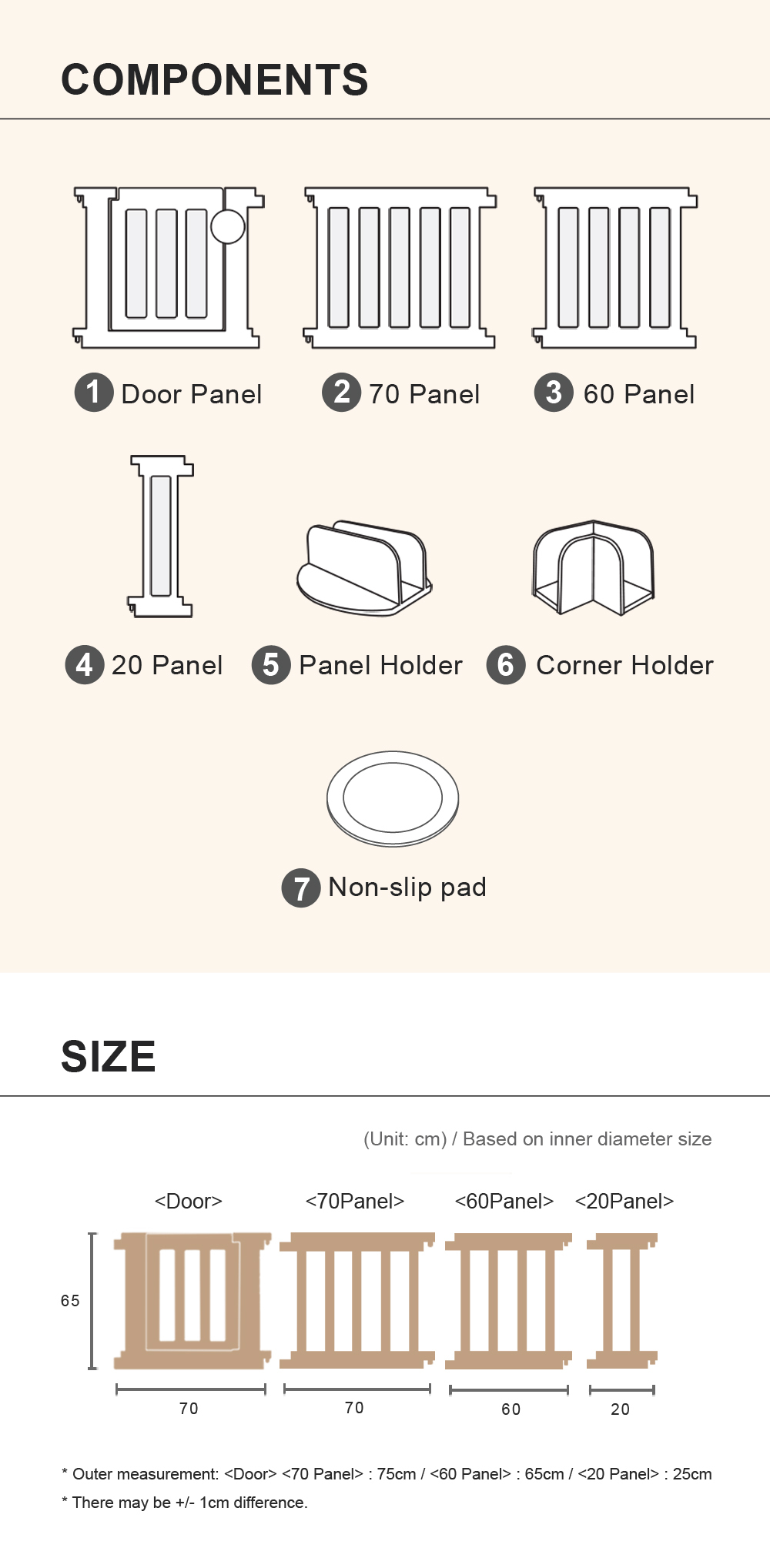 Product includes: Door Panel x 1 / 20 Panel x 2 / 60 Panel x 4 / 70 Panel x 3