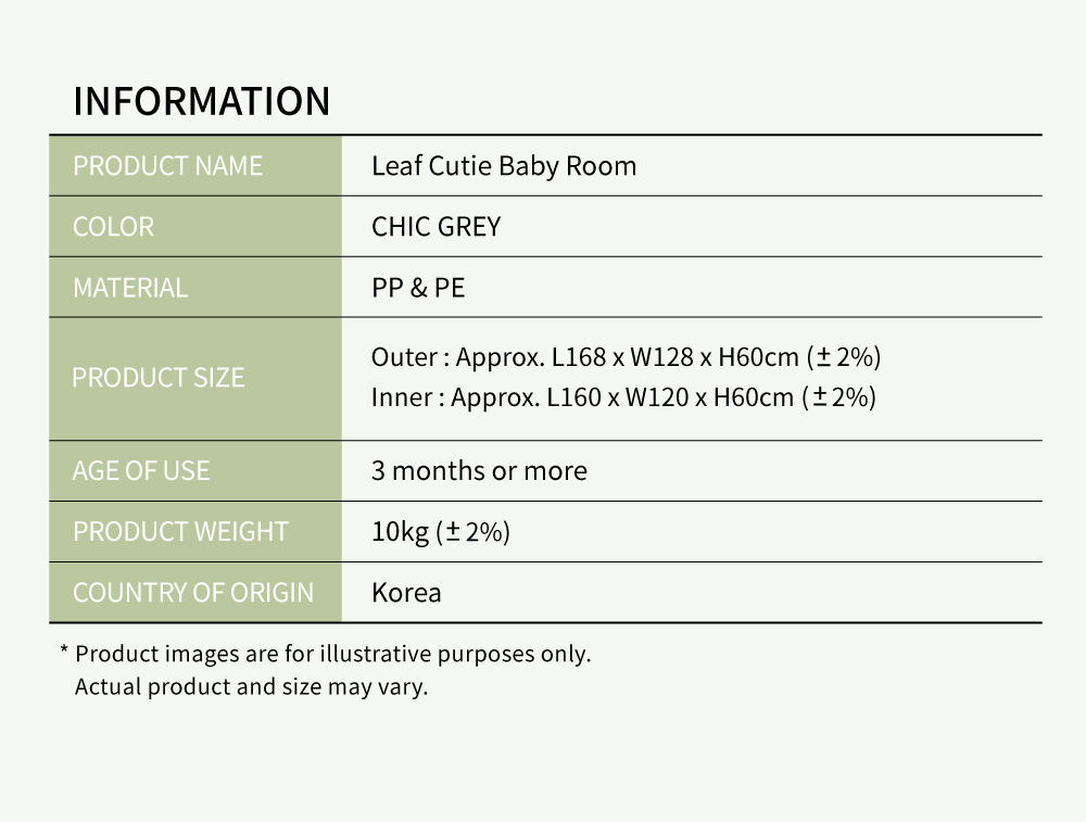 * Promotion: buying play mat together with Leaf Cutie Baby Room, you are entitled to get free corner and panel holders.