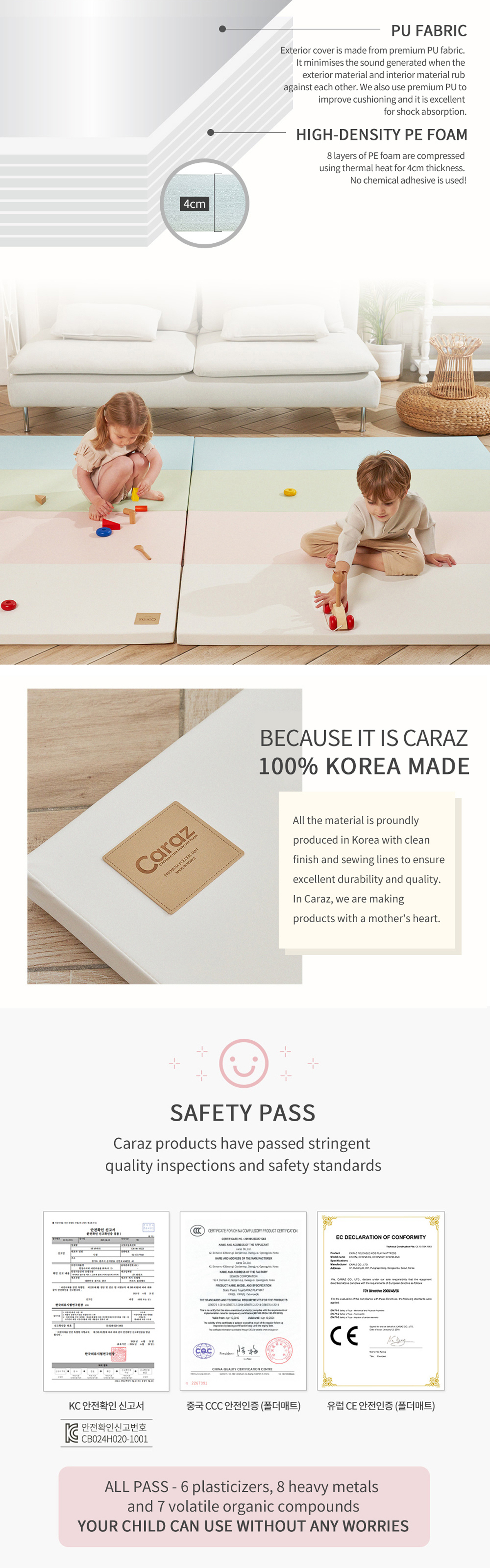 Inner Material: 8 layers of high-density PE form.No chemical adhesive is used. Layers are combined by the thermal method. Even in the high temperature, no harmful substances will be released. It is safe for your child.