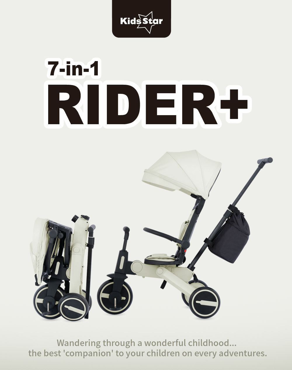Get this multi-functional Rider+ foldable tricycle for all adventures with its folding mechanism and multi-functional design. The Kid Star trike functions as a stroller as well as a tricycle and lets you control its movements with ease. It can be used as a buggy and turned into a tricycle as he/she grows.