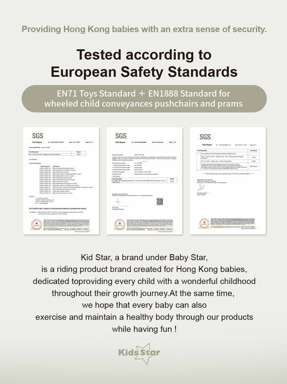 - Tested and approved in accordance with European safety standards EN 71 and EN1888