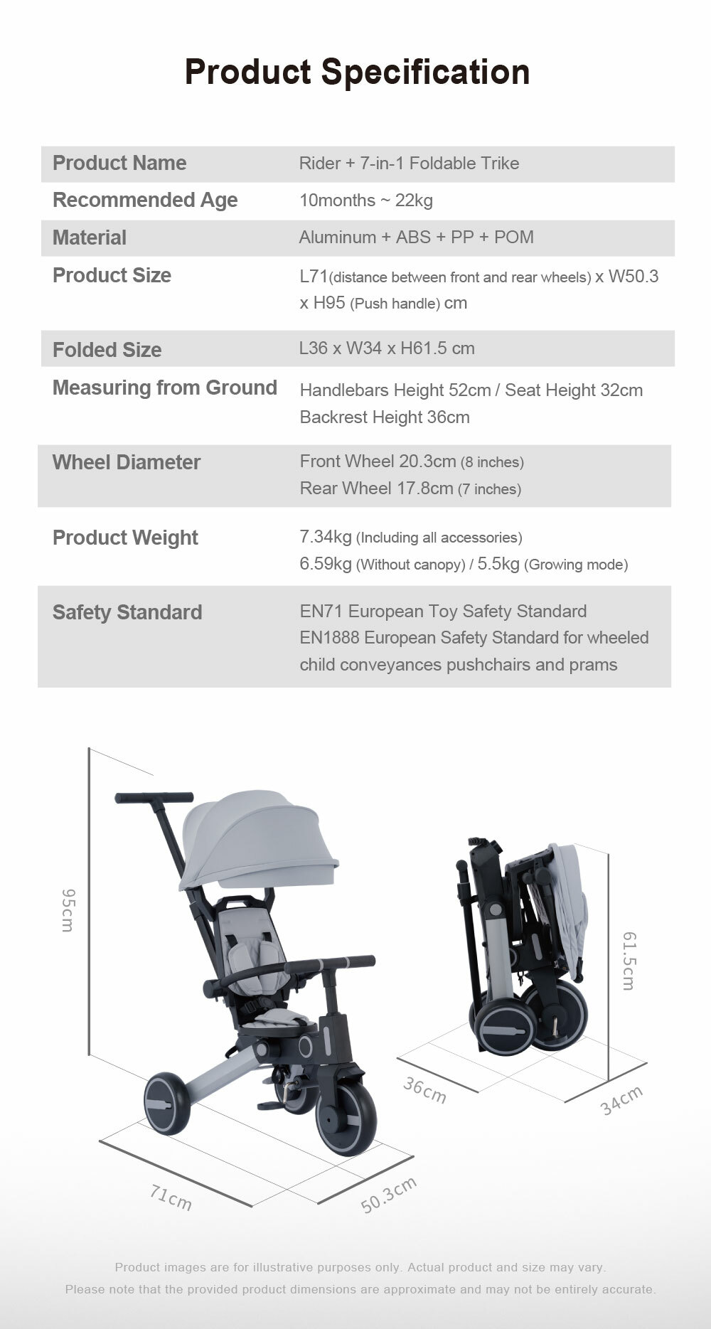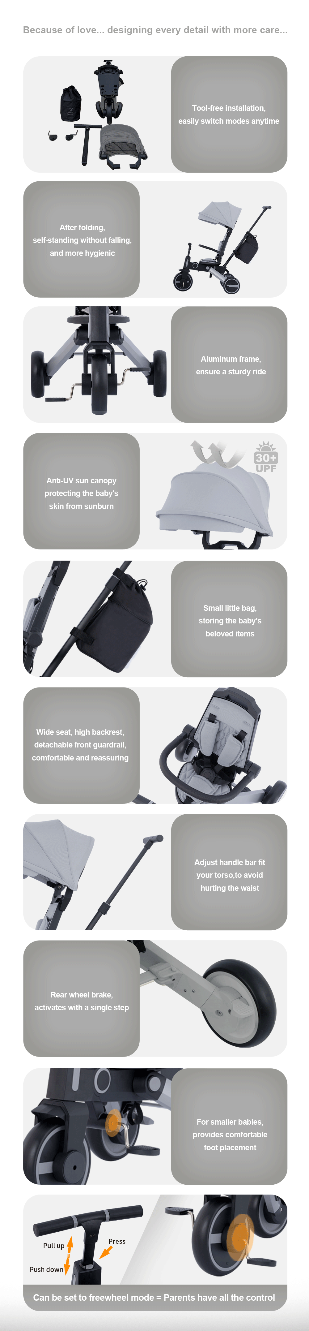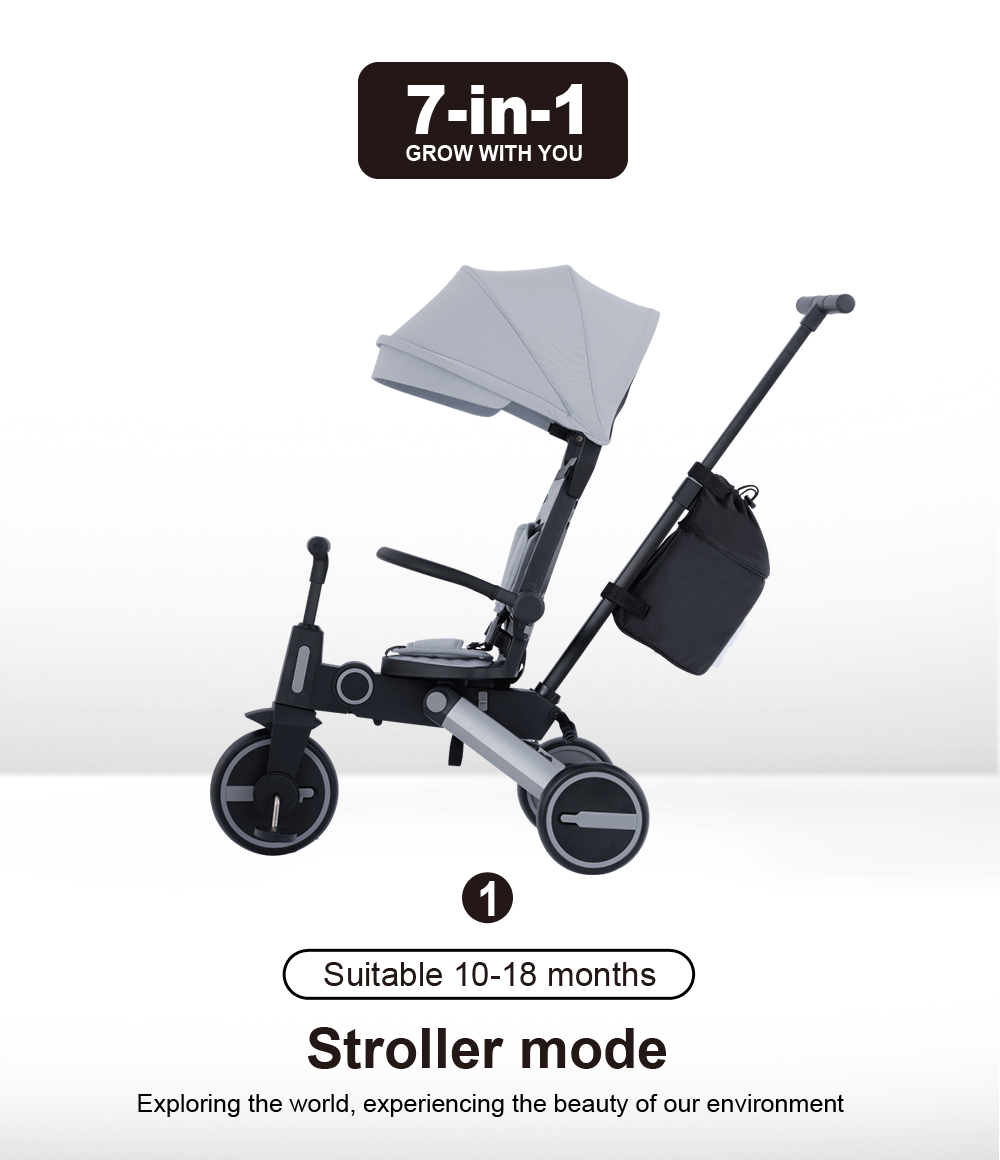 - Multi-functional Design: can be used as a stroller or trike (detachable parent handle, guard rail, hood)