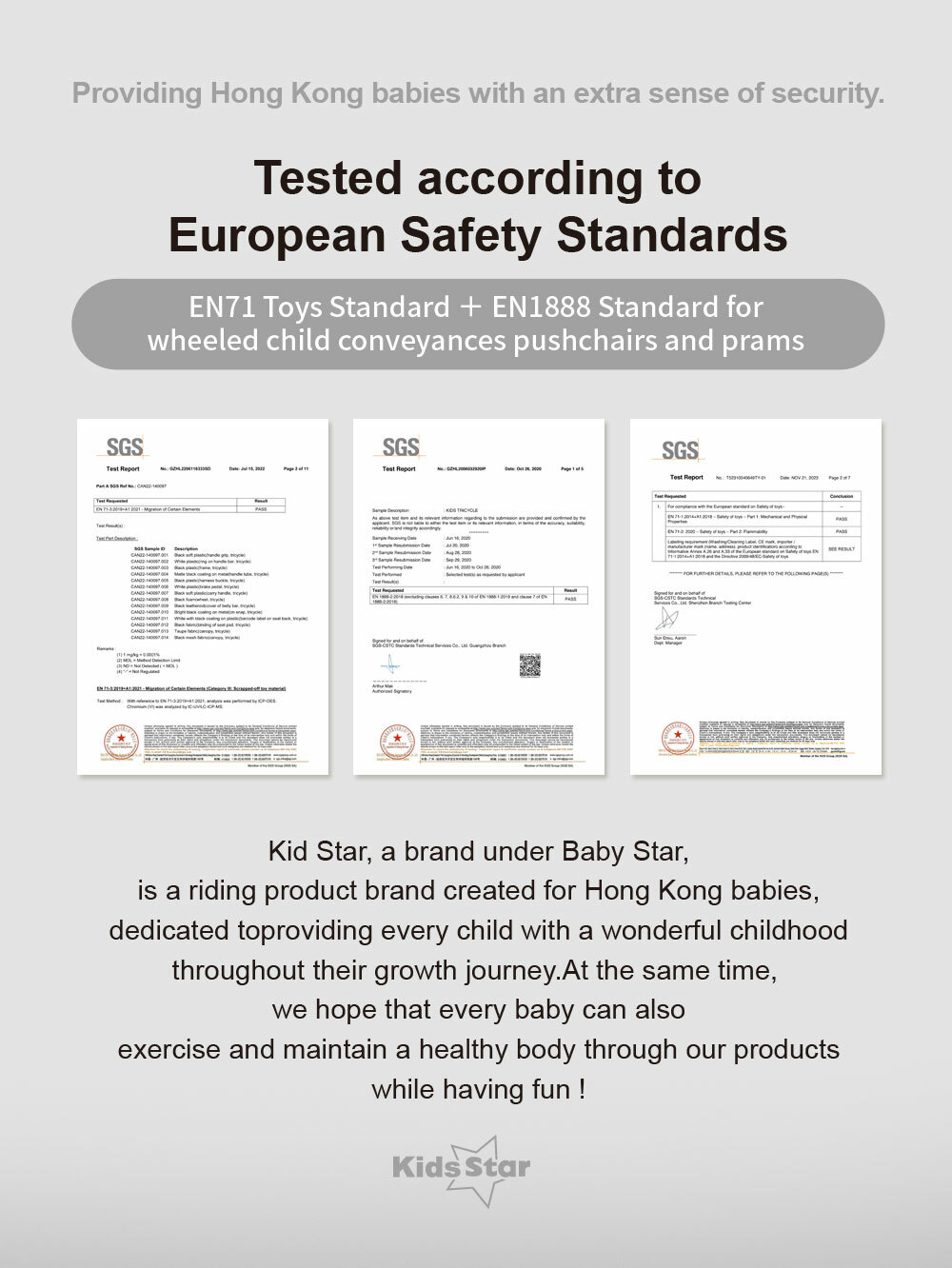 - Tested and approved in accordance with European safety standards EN 71 and EN1888