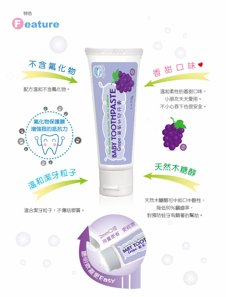 KUKU Duckbill Grapes Flavoured Toothpaste with gentle fluoride protection for baby teeth and gums. As soon as your baby starts teething, it is important to care for their teeth and gums with regular brushing.