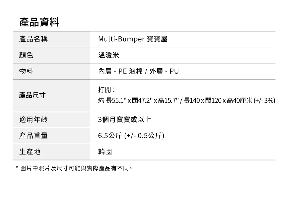 產品尺寸:外 - 約 長55.1” x 闊47.2” x 高15.7” / 長140 x 闊120 x 高40厘米 (+/- 2%)