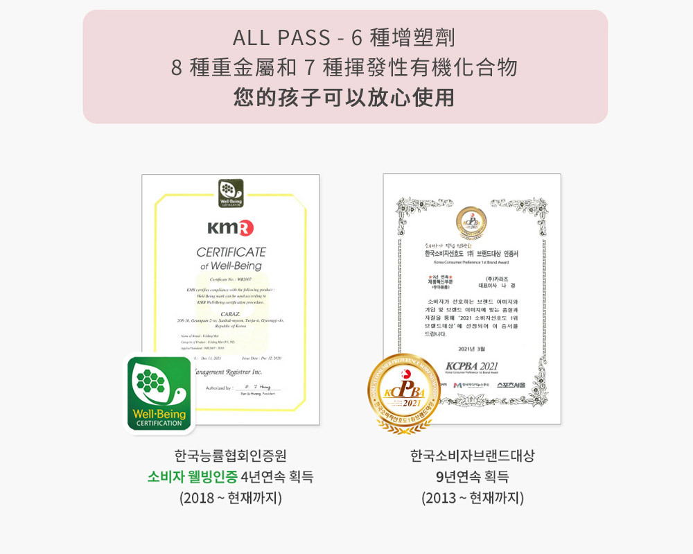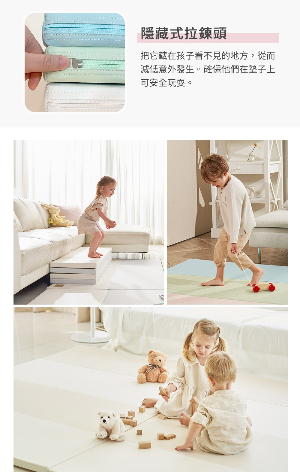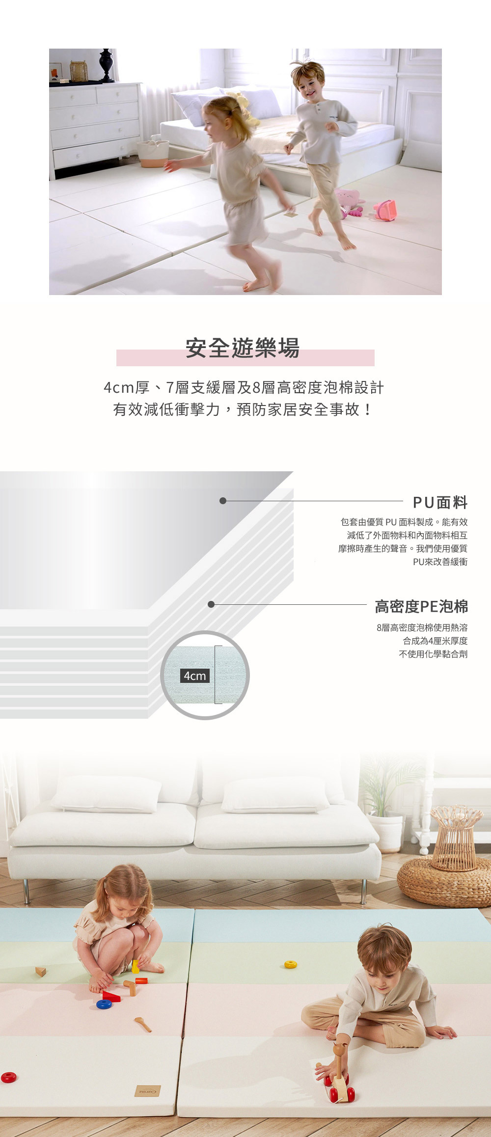 內層: 由8層高密度PE foam組成。不使用化學黏合劑,而使用熱溶合而成,在高溫也不會產生有害物質,使家長放心使用。