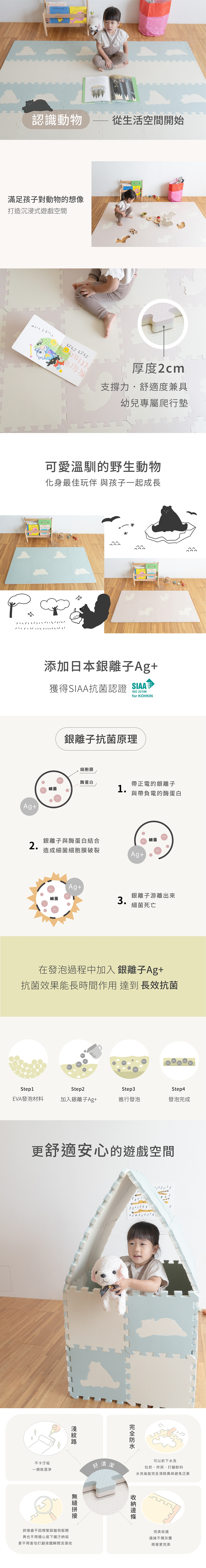 透過創意將北極熊與松鼠放進地墊,選用兩種柔嫩色系更貼近北極熊與松鼠的概念,讓討喜的動物陪著孩子一起成長。