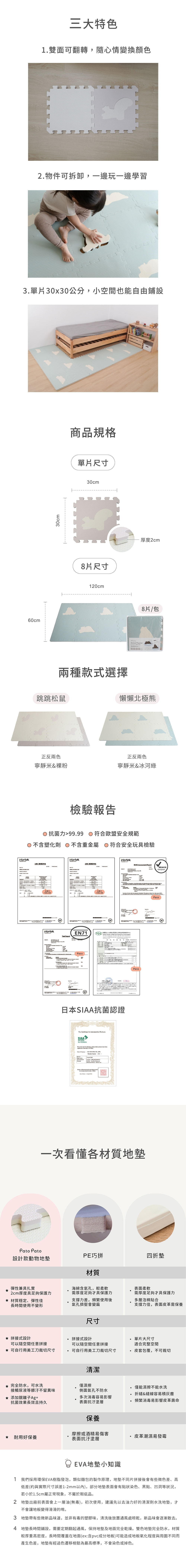 注意事項:地墊為發泡製程具±2mm之厚度差異,邊條屬於贈品若有黑點、染色及斷開不屬於產品瑕疵唷!
